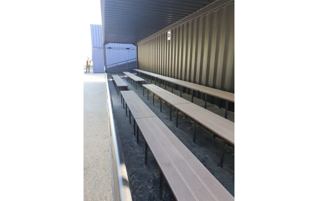 - Geräumiges Fassungsvermögen: Mit einer Länge von 40 Fuß (ca. 12,19 Meter) bietet der Tribünencontainer ausreichend Platz für eine große Anzahl von Sitzplätzen, sodass die Fans die Spiele bequem genießen können.