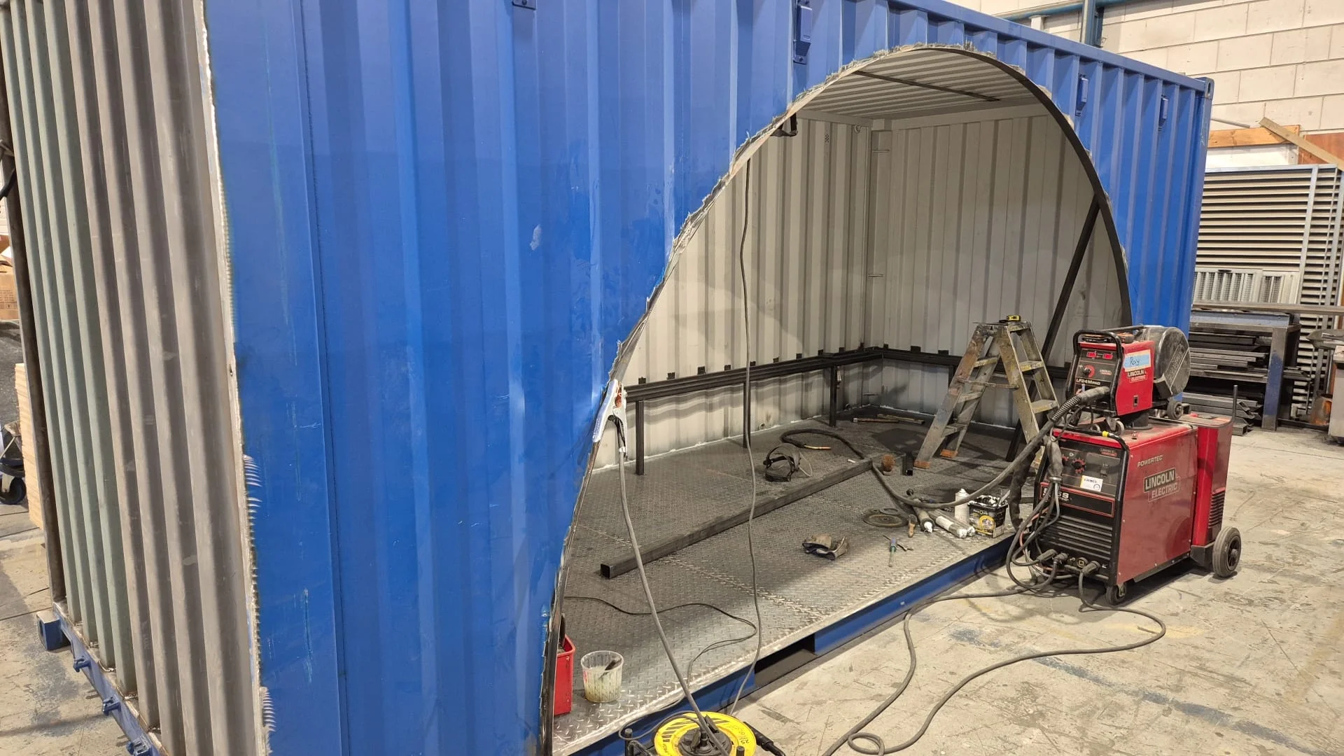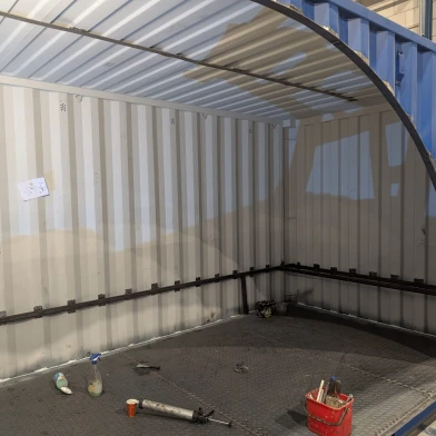 - Sicherheit und Komfort: Ausgestattet mit Sitzbänken, einem Tisch, Beleuchtung und einem Riffelblechboden.