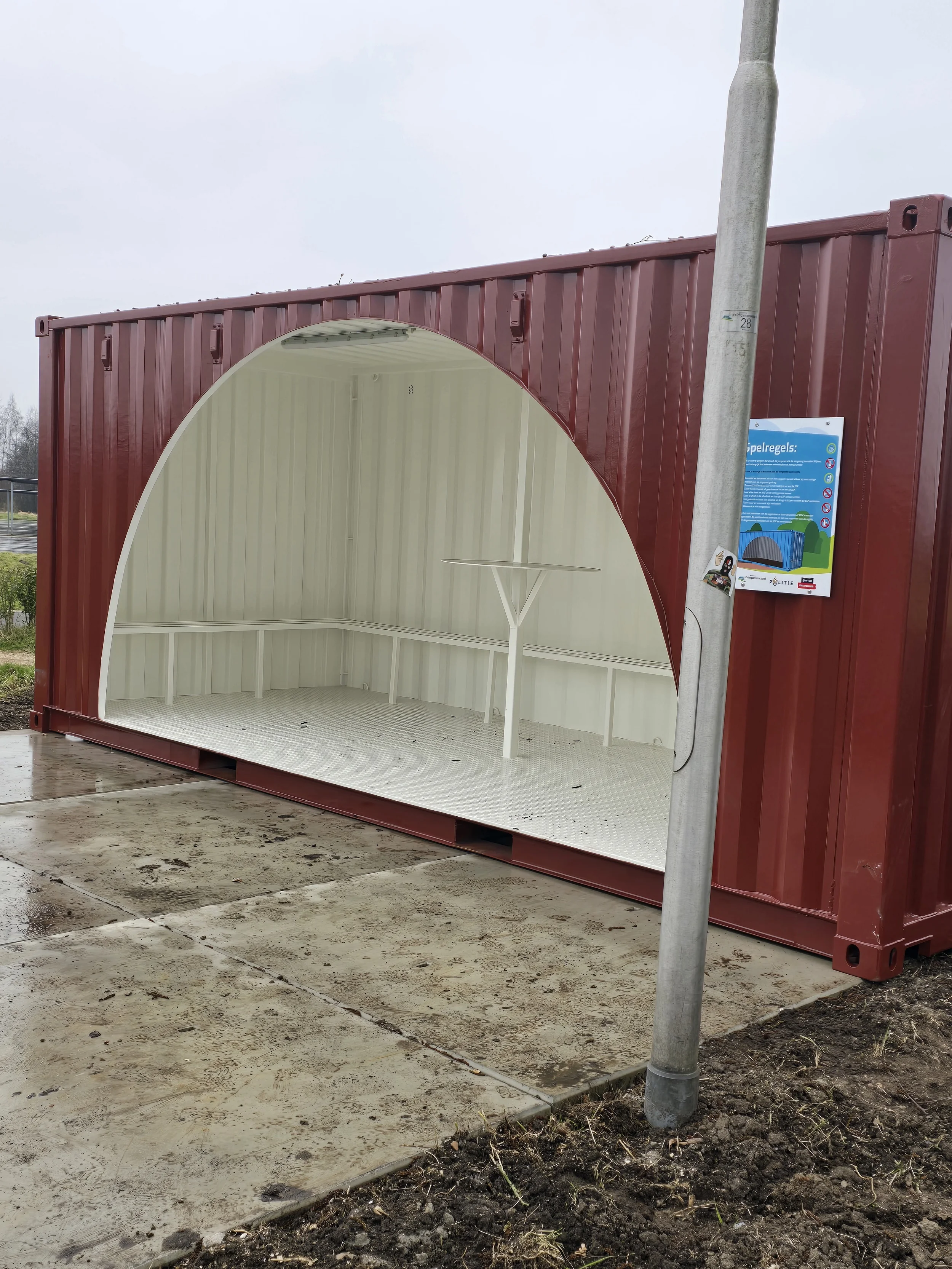 Im Auftrag der Gemeinde Krimpenerwaard hat K-tainer einen maßgeschneiderten Jugendtreffpunkt (JOP) geliefert. Dieses Projekt wurde ins Leben gerufen, um jungen Menschen einen sicheren und zugänglichen Ort zum Zusammenkommen zu bieten. Der Container ist vandalismussicher und wetterfest konzipiert, um eine lange Lebensdauer zu gewährleisten.
