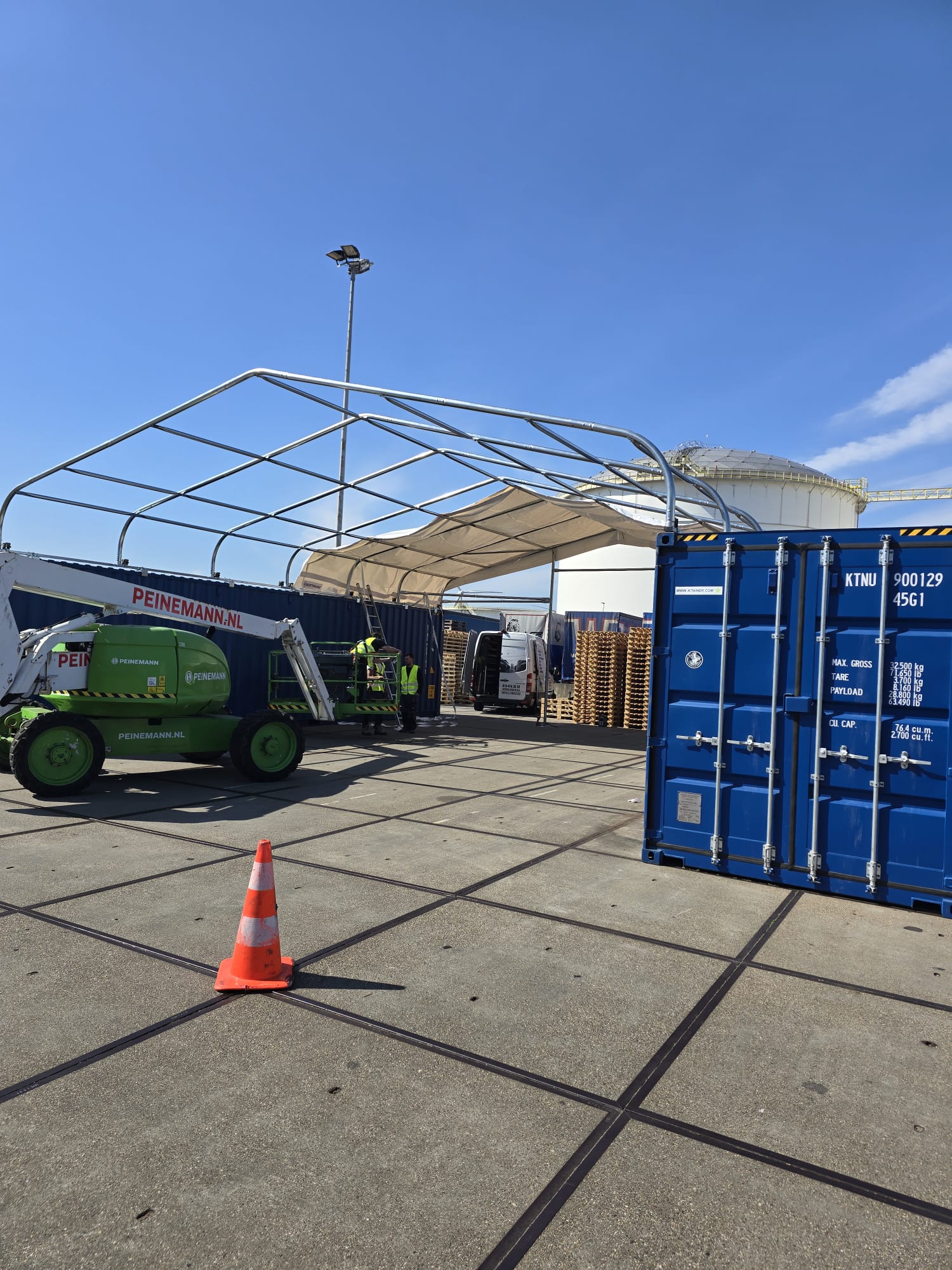 Für Greif Niederlande haben wir eine komplette Überdachung auf zwei 40ft High Cube Seecontainern realisiert. Dieses Projekt wurde in Zusammenarbeit mit unseren Partnern durchgeführt, womit wir den Weg von der Anfrage bis zur Fertigstellung erfolgreich abgeschlossen haben.