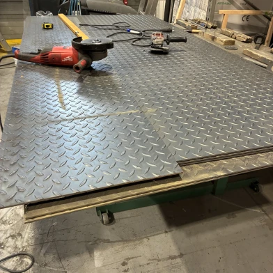 - Versterkte wanden: links en rechts 10 platen van 3 mm dik en 62,5 cm hoog, gelast op 30–40 cm van de vloer