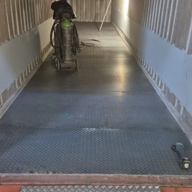 - Tranenplaat vloer van 5 mm dik tot aan de gooseneck voor maximale slijtvastheid